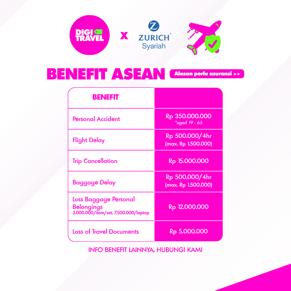 Adapun puluhan benefit lainnya, dapat menghubungin Customer Service DIGITRAVEL.