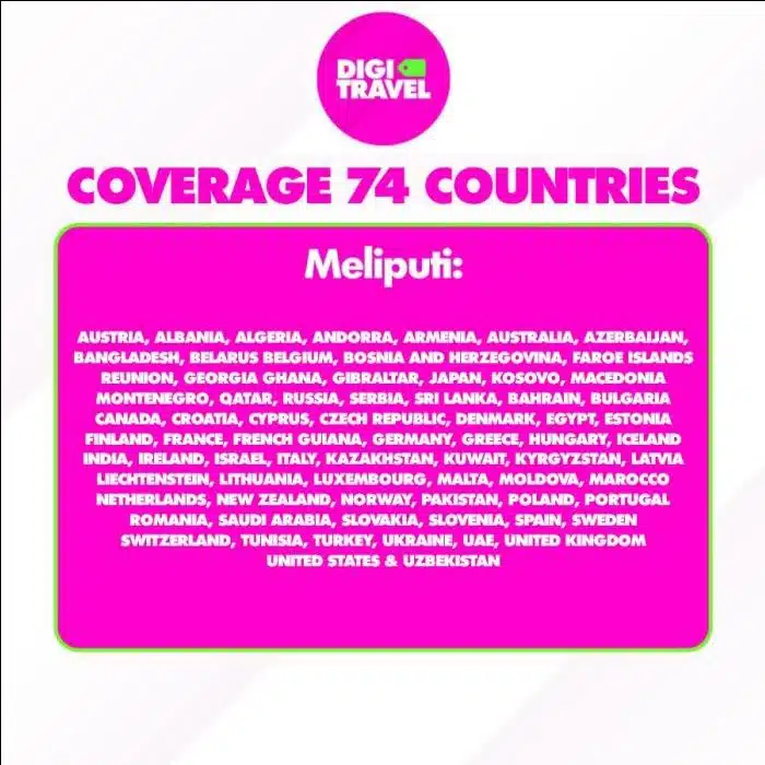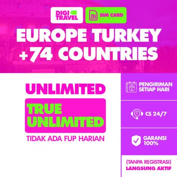Nikmati internet tanpa batas di All Europe +74 Countries dengan SIM Card yang dapat digunakan di berbagai jaringan 4G LTE, dan 5G+. Tersedia dalam beberapa pilihan kuota harian dan masa aktif fleksibel, mulai dari 1 hari hingga 15 hari.
